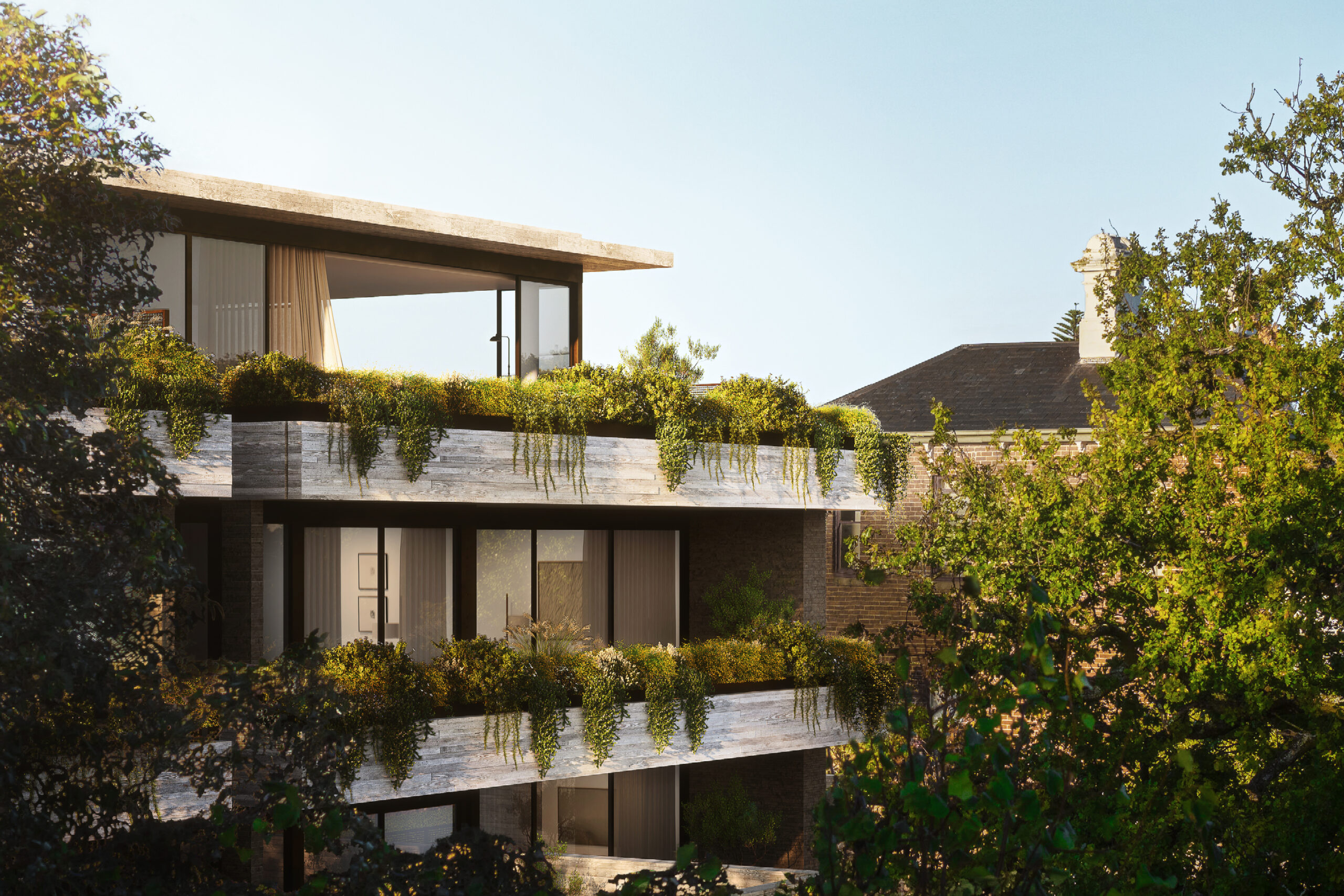 Drawn to the significance of the area and the uniqueness of the sloping corner site, when Managing Director Michael Piccolo first walked it, the impact was immediate. “It had to have that emotional pull,” he says. That instant connection became the foundation for what is being created here: 60 homes spread across five pavilion-style buildings, each with soaring three-metre ceilings, dual or triple aspects, and a direct relationship to the landscape.
